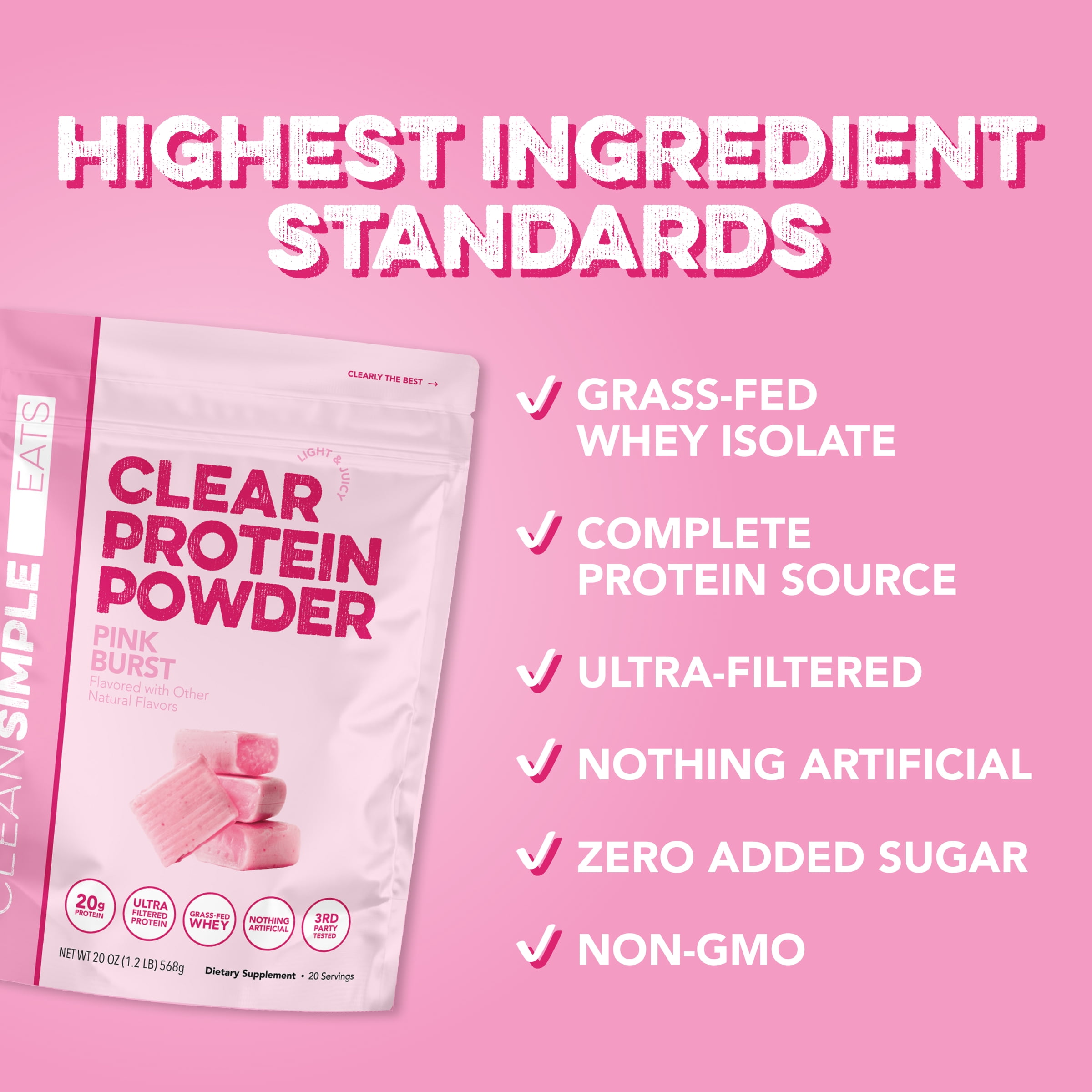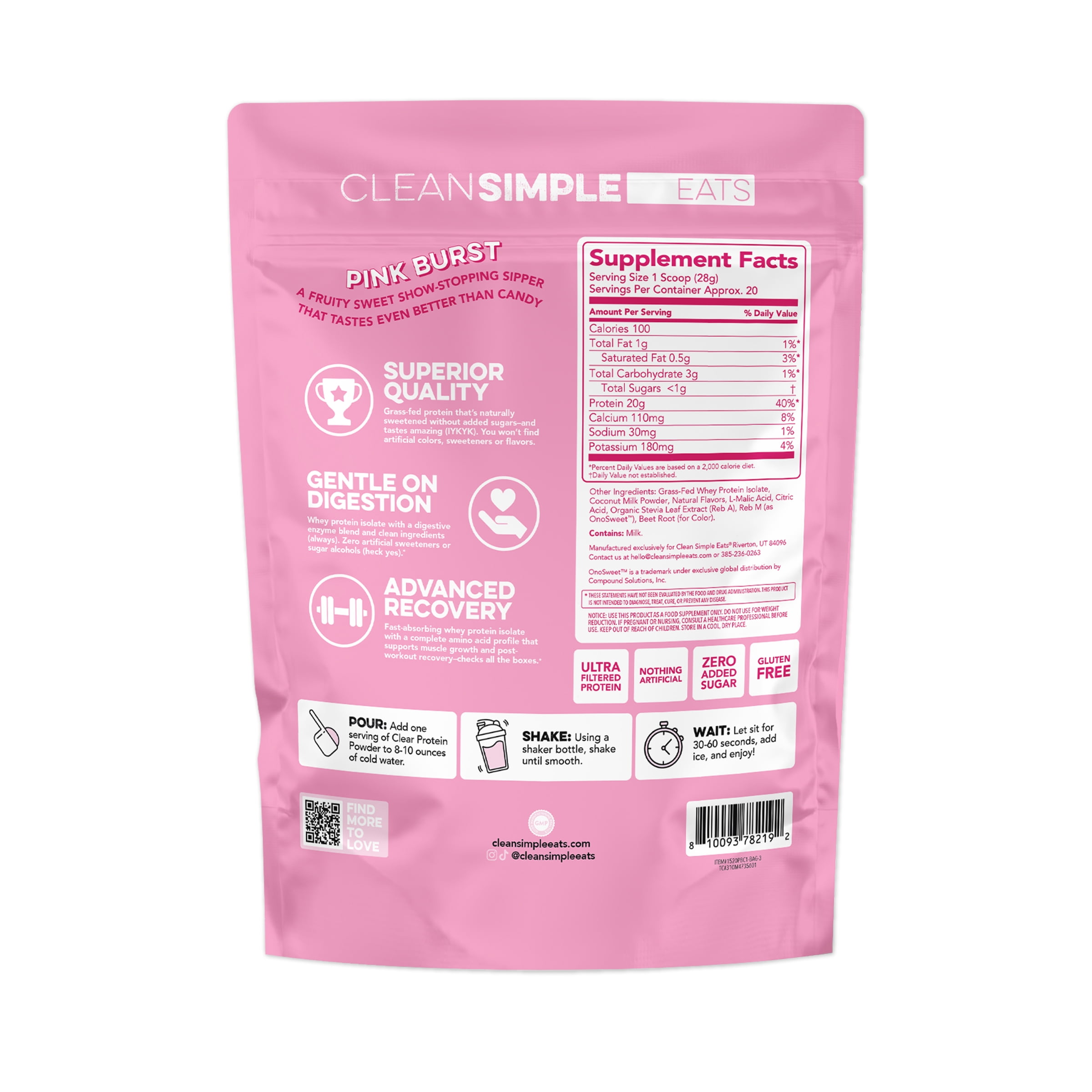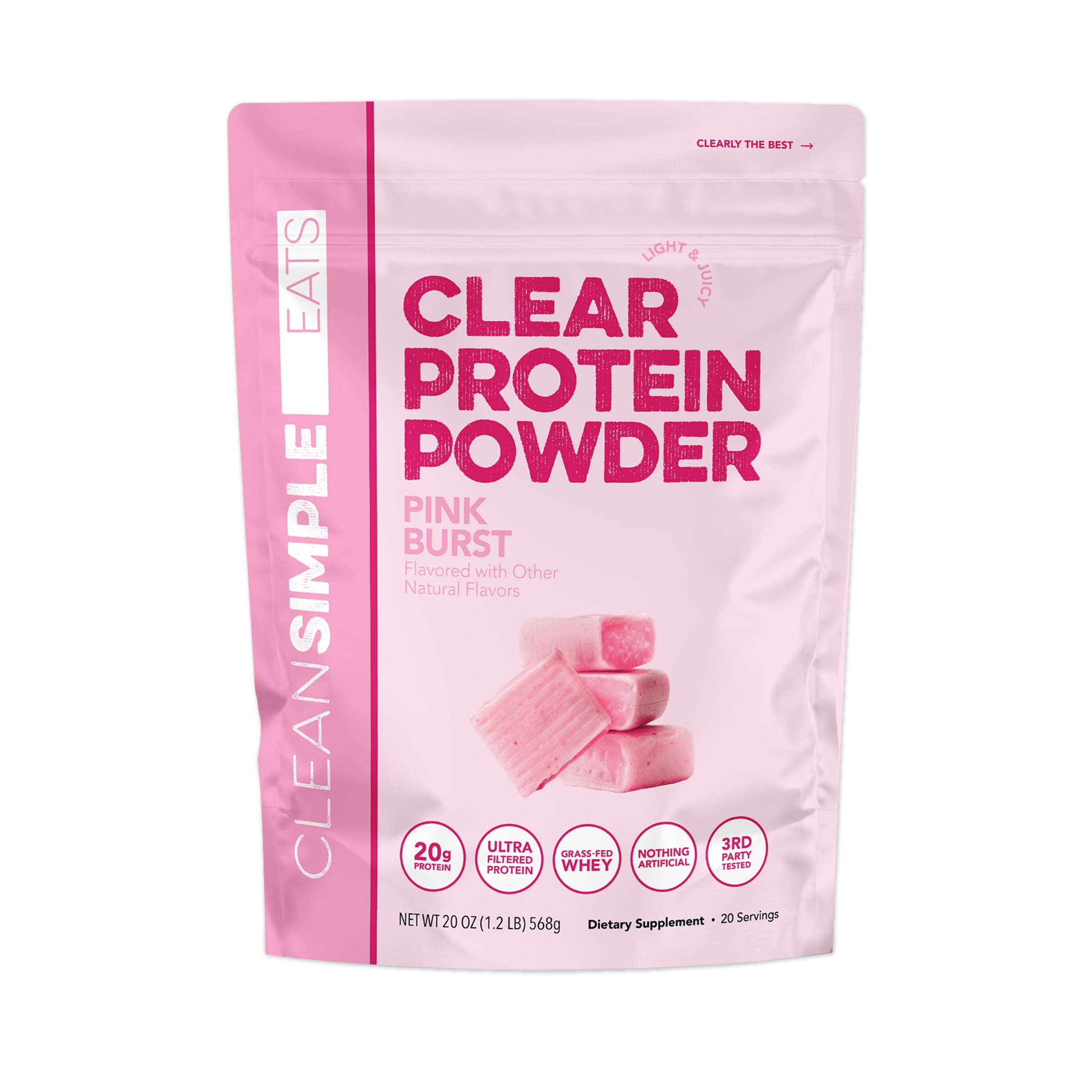 Clean Simple Eats Clear Protein Powder Pink Burst Gusset – 20 Servings