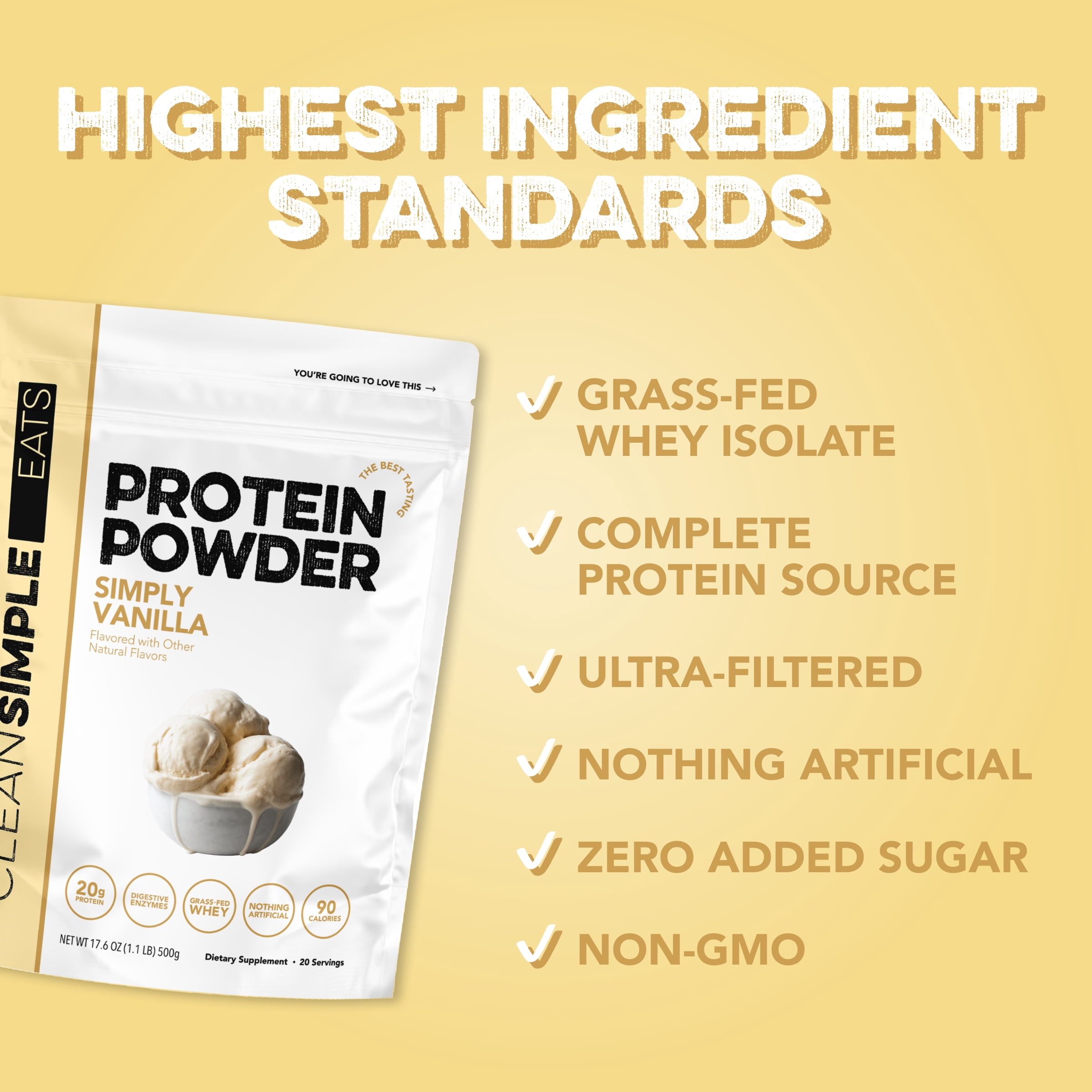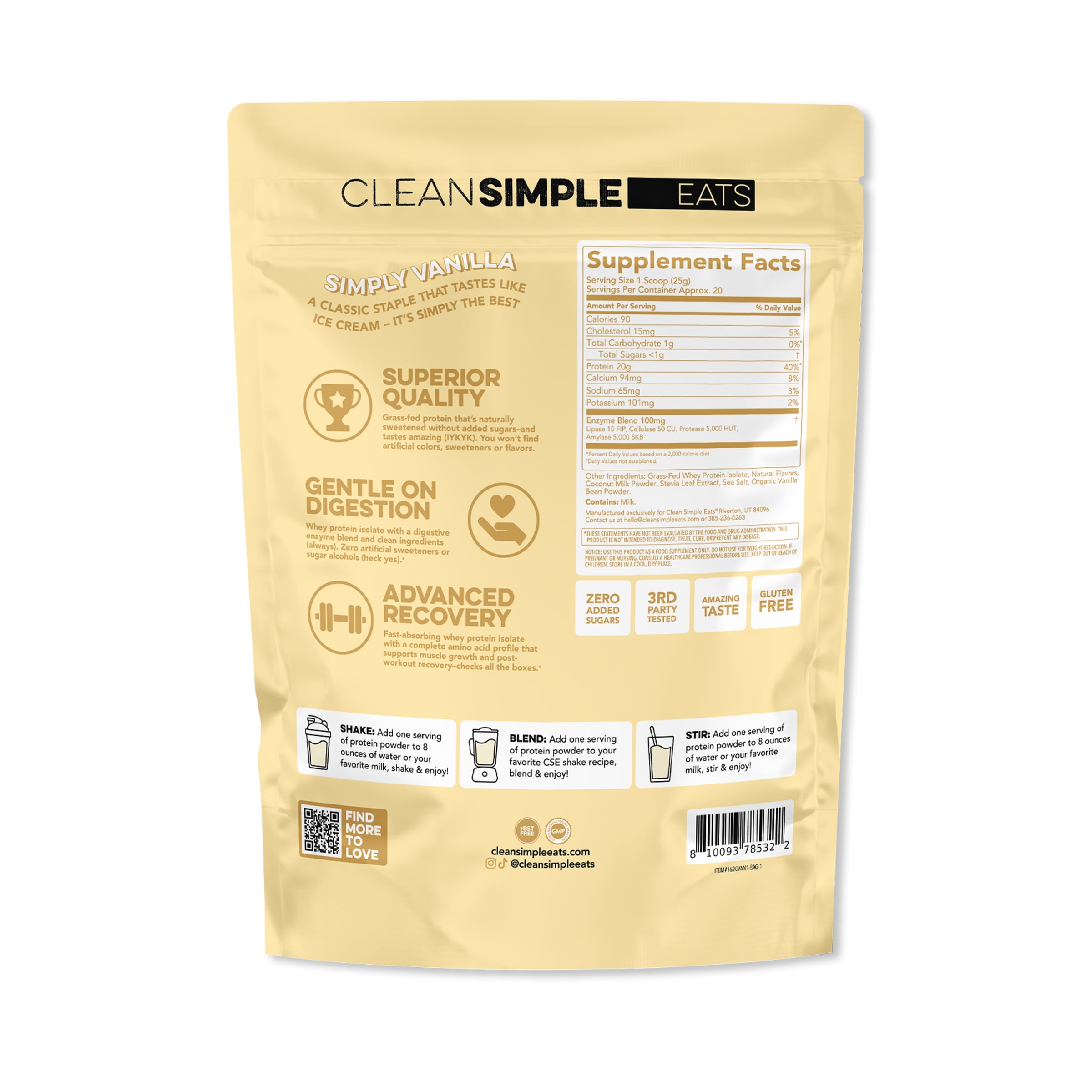 Healthy that hits different: Upgrade your daily wellness routine with the best tasting Protein Powder that’s highly effective, made with clean ingredients and high-quality standards. Each serving contains 20g whey protein isolate with high protein purity and a complete amino acid profile that’s fast-absorbing and gentle on digestion to help build lean muscle, aid recovery, and fuel your day. The best thing about Clean Simple Eats Protein Powder (besides the crave-worthy flavors) is how versatile it is! Use in smoothies, shakes, oatmeal and pancakes to enjoy a protein boost in your favorite recipes or simply scoop, shake, and sip. “It’s our goal to create supplements that are undeniably clean, 100% delicious, and meant to be enjoyed every day.” Founder and CEO, Erika Peterson