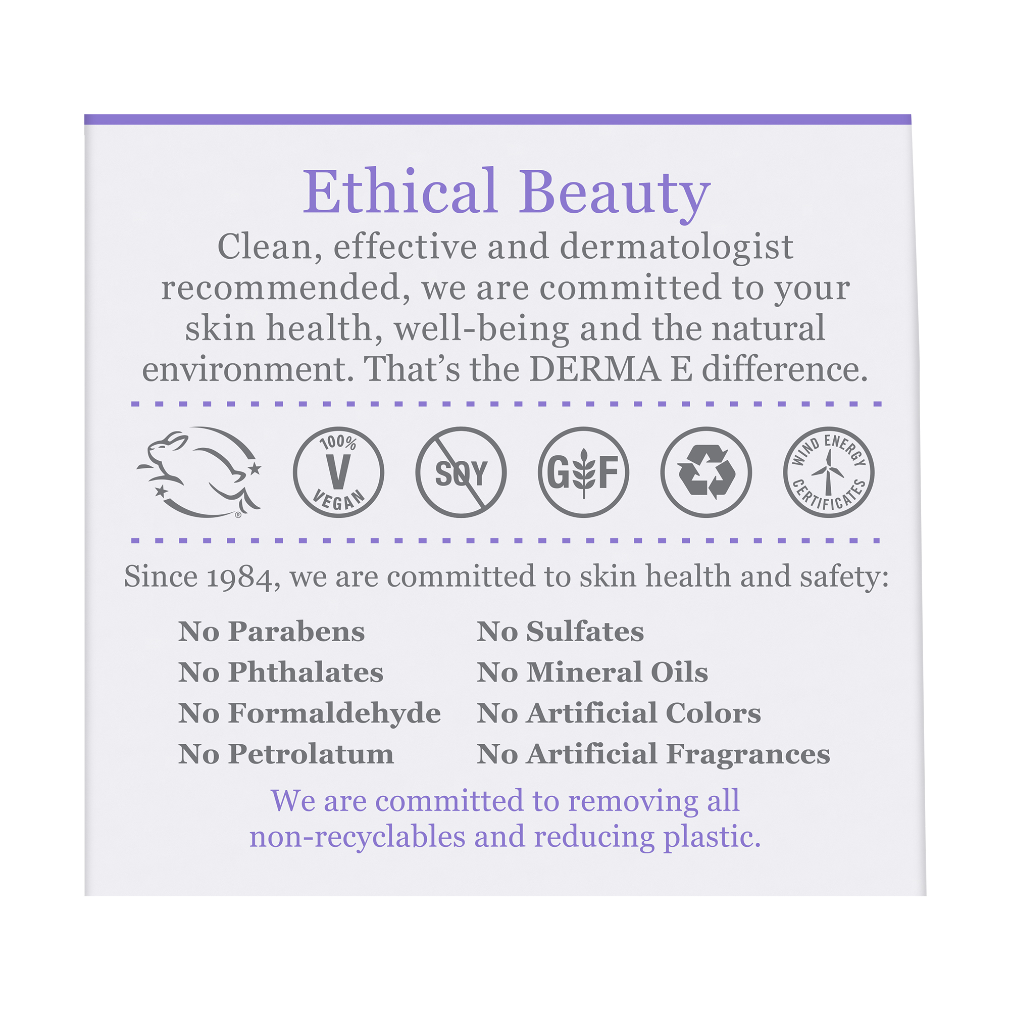 DERMA E’s proven clean beauty collection of dermatologist recommended skin, hair, body, and sun care is 100% vegan, GMO-free, cruelty-free, and leaping bunny certified. Join us on a journey to zero waste.
