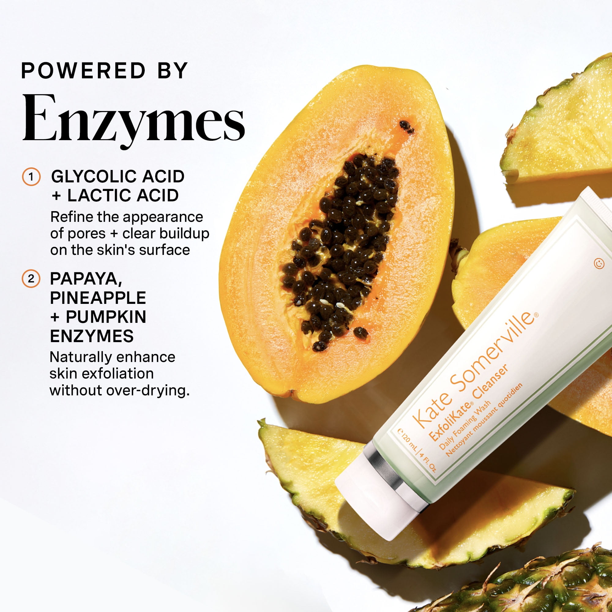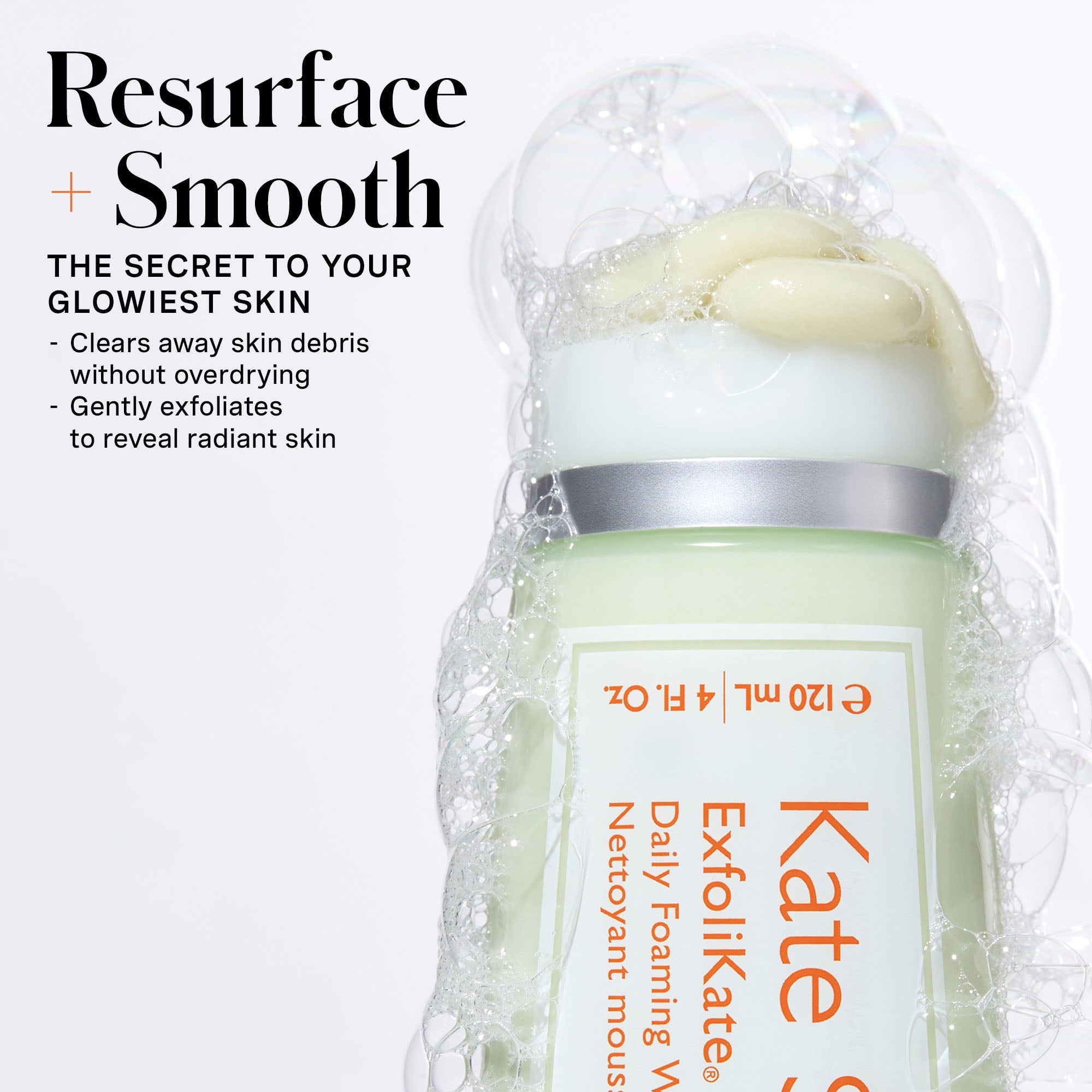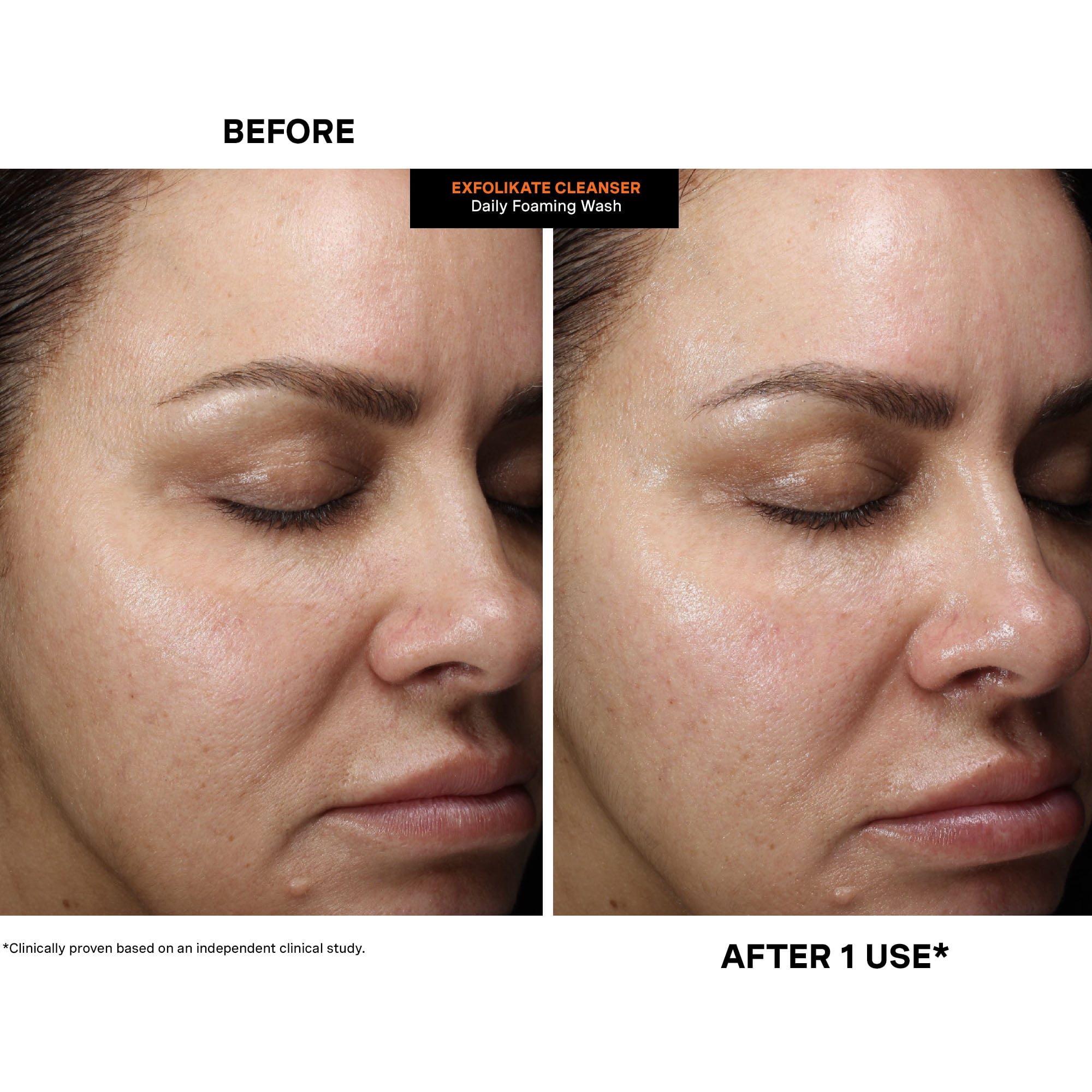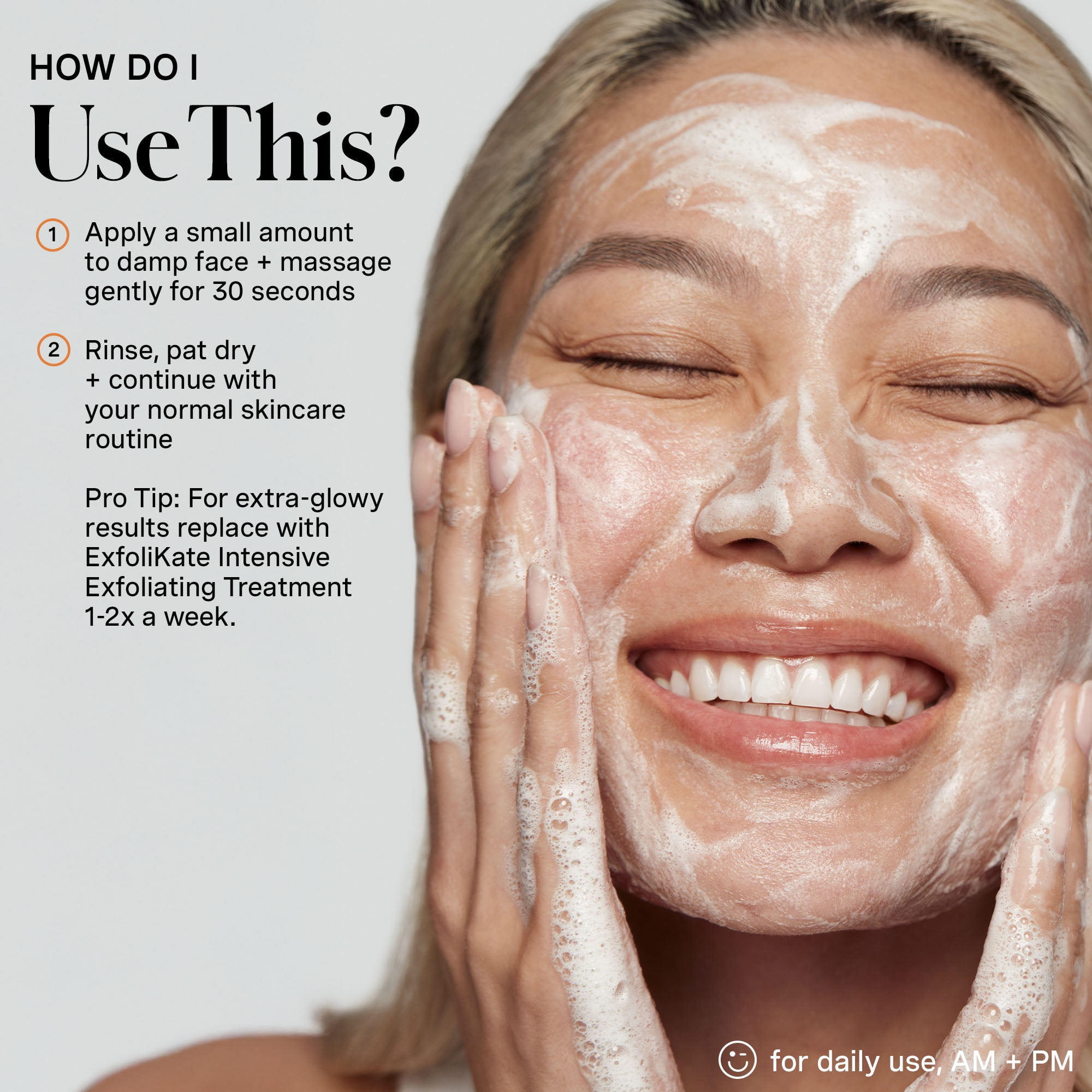 For that extra fresh clean feel with the added benefits of gentle exfoliation, this is the one. Our luxe ExfoliKate Cleanser Daily Foaming Wash combines clinical-grade exfoliating ingredients like Glycolic Acid + Lactic Acid to deliver glowing complexion. A complex of nourishing botanical enzymes clears away skin debris without overdrying, gently exfoliates, and leaves you with soft-to-the-touch skin.