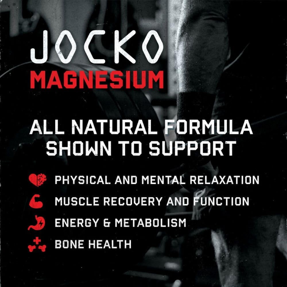 JOCKO MAGNESIUM’s advanced formula combines three forms of magnesium for optimal absorption and results. Magnesium glycinate for muscle relaxation and sleep support, magnesium taurate for heart health, and magnesium citrate for improved digestion. For athletes, magnesium is especially important for recovery due to its impact on energy production, muscle soreness, and bone health. Each batch of JOCKO Magnesium is third-party tested to ensure the highest quality and purity, free from GMOs, preservatives, soy, gluten, and other common allergens.