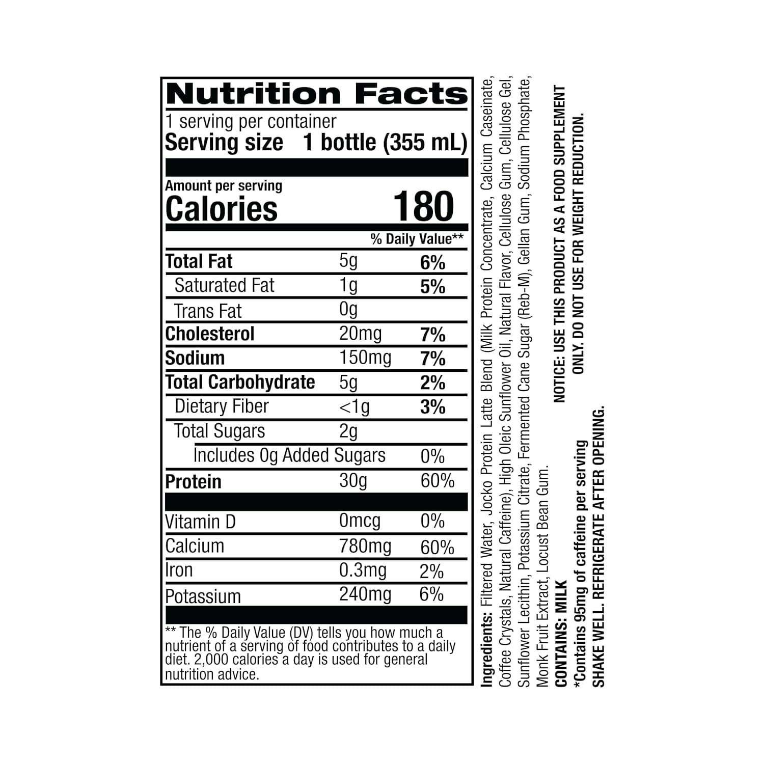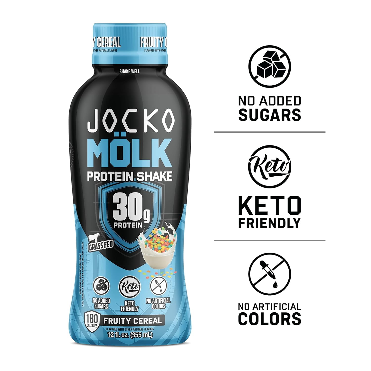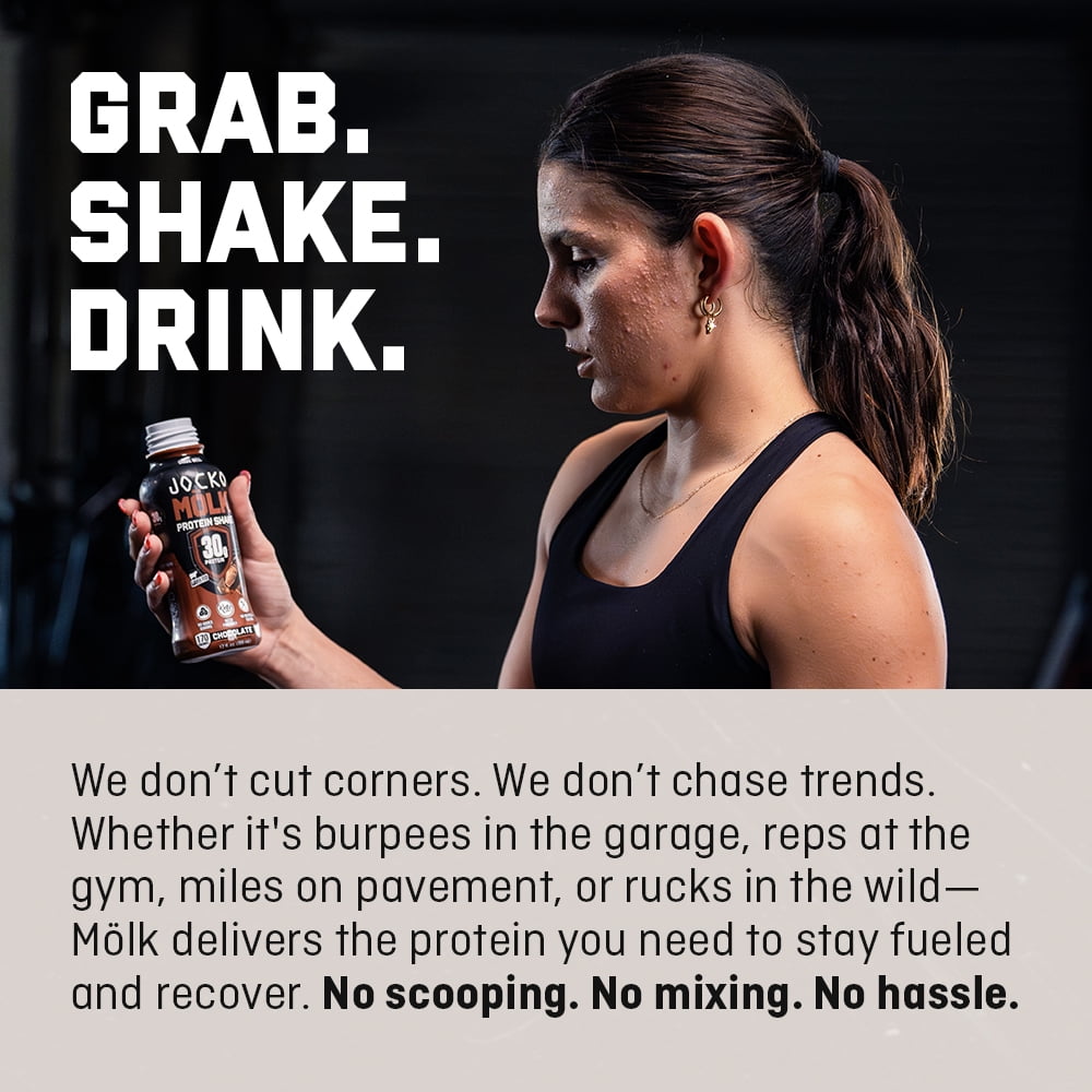JOCKO MÖLK ready-to-drink protein shakes are expertly crafted with a blend of milk protein concentrate and calcium caseinate, providing 30 grams of grass-fed protein with just 180 calories per serving to fuel muscle growth and recovery all day long. Made from four high-quality protein sources—whey protein concentrate, whey protein isolate, casein, and egg—our shakes come from happy, grass-fed cows and are free from hormones and soy. Enhanced with digestive enzymes and probiotics, Mölk supports gut health and ensures smooth digestion while delivering essential amino acids that aid in muscle building and immune function. Plus, with no added sugar and sweetened only with monk fruit, Mölk is sugar-free, KETO-friendly, and free of artificial sweeteners and colors, making it a delicious and nutritious choice for your protein needs.
