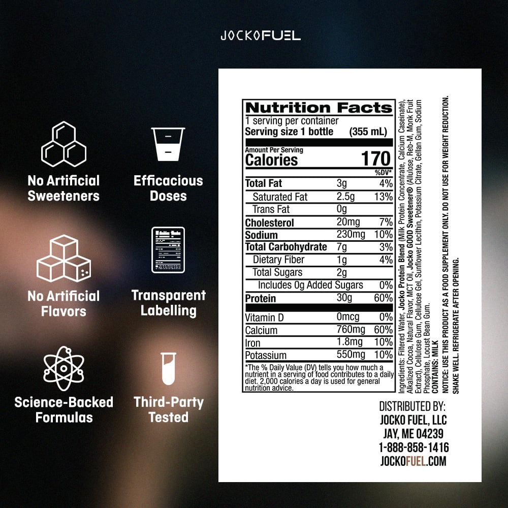 - JOCKO MÖLK ready to drink protein shakes designed and engineered with a protein blend of milk protein concentrate and calcium caseinate. This protein blend helps fuel muscle growth and recovery all day long.