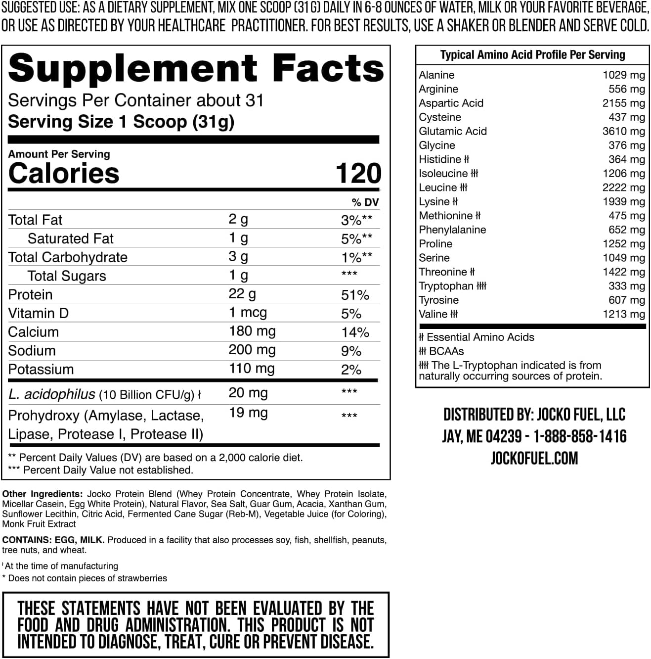 Fuel your muscle growth and recovery with JOCKO MÖLK, a premium protein powder crafted with a time-release blend of whey concentrate, whey isolate, micellar casein, and egg. This unique formula digests slowly, providing sustained energy and support throughout the day. Enriched with a variety of amino acids, MÖLK helps build muscle and regulate immune function, while added digestive enzymes and probiotics promote gut health for optimal nutrient absorption. Enjoy a delicious, sugar-free taste thanks to our special blend of allulose, monk fruit extract, and reb-M, all without hormones or soy. Sourced from happy, grass-fed cows, JOCKO MÖLK is the ideal choice for anyone serious about their fitness goals.