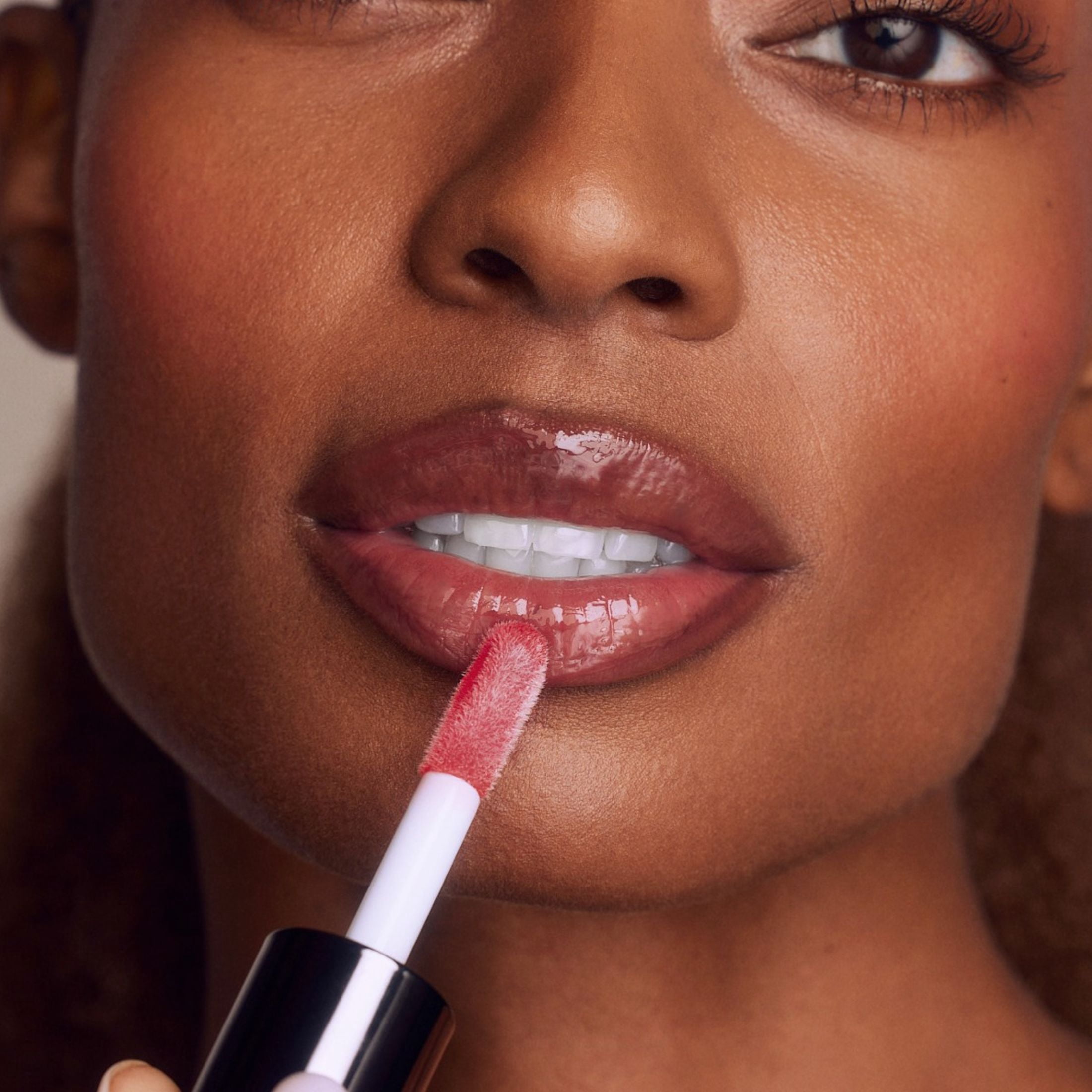 A non-sticky, skincare-infused lip oil that provides a hint of color and luminous shine as it instantly replenishes and conditions with essential moisture to reduce the look of lip lines for visibly smoother, plumper & more supple lips.