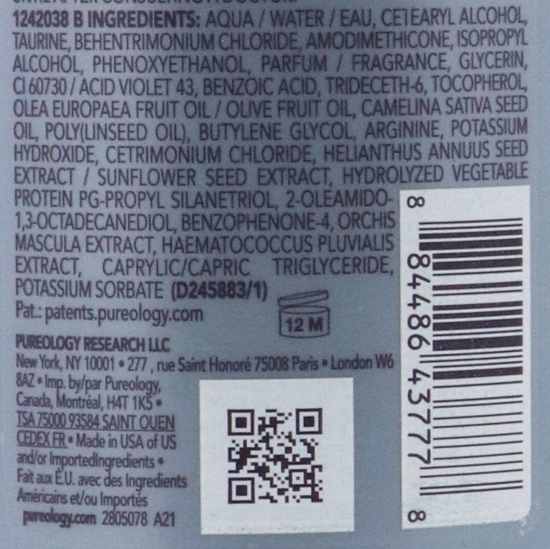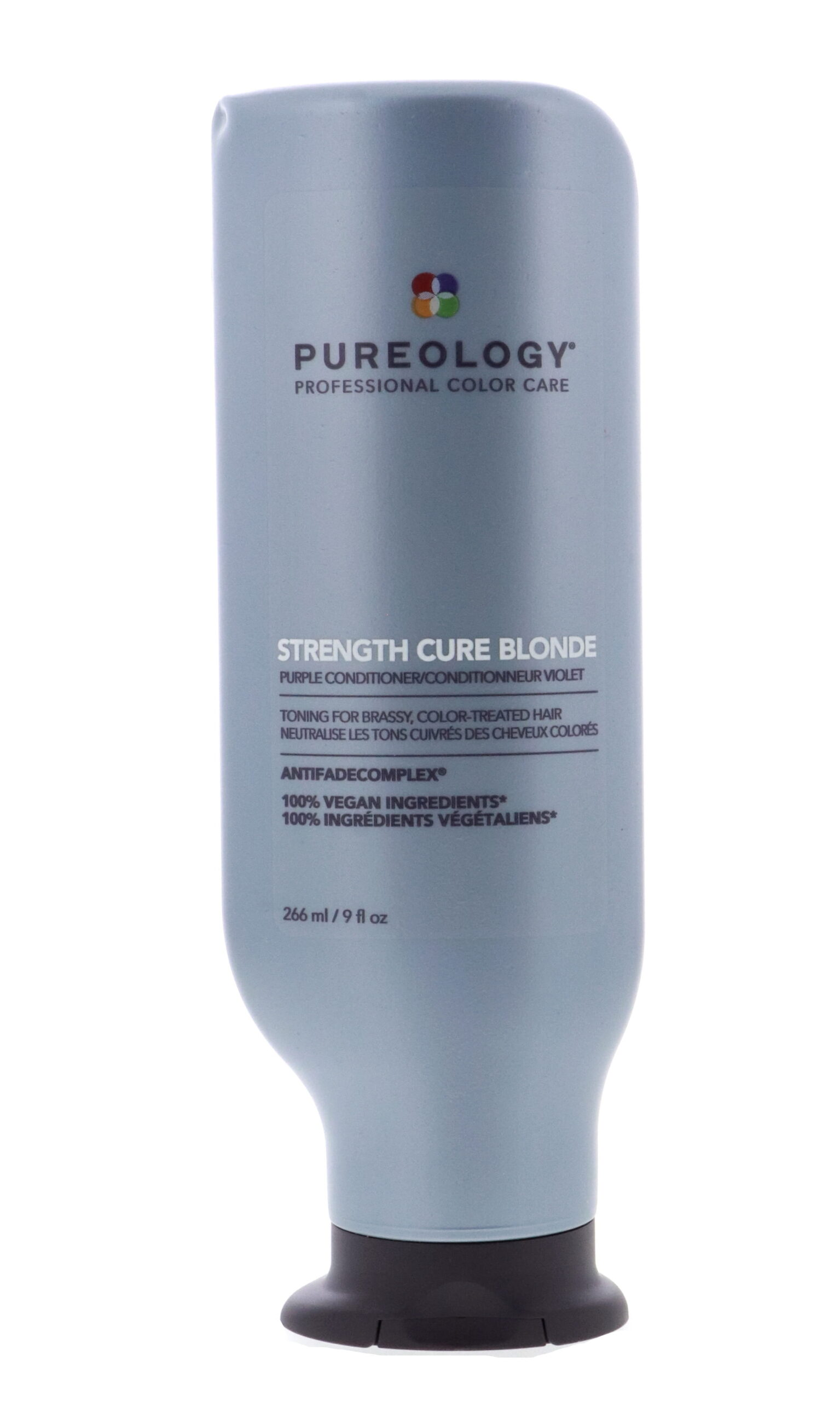 Pureology Strength Cure Blonde Purple Conditioner is a toning and strengthening conditioner designed specifically for blonde, highlighted, and color-treated hair. Infused with purple pigments, it helps neutralize unwanted brassy and yellow tones while deeply conditioning and strengthening fragile hair. This sulfate-free, 100% vegan formula also features Pureology’s exclusive AntiFade Complex® to maintain color vibrancy and improve hair health. The luxurious blend of aromatherapy, including pear, rose, and sandalwood, creates a refreshing sensory experience.