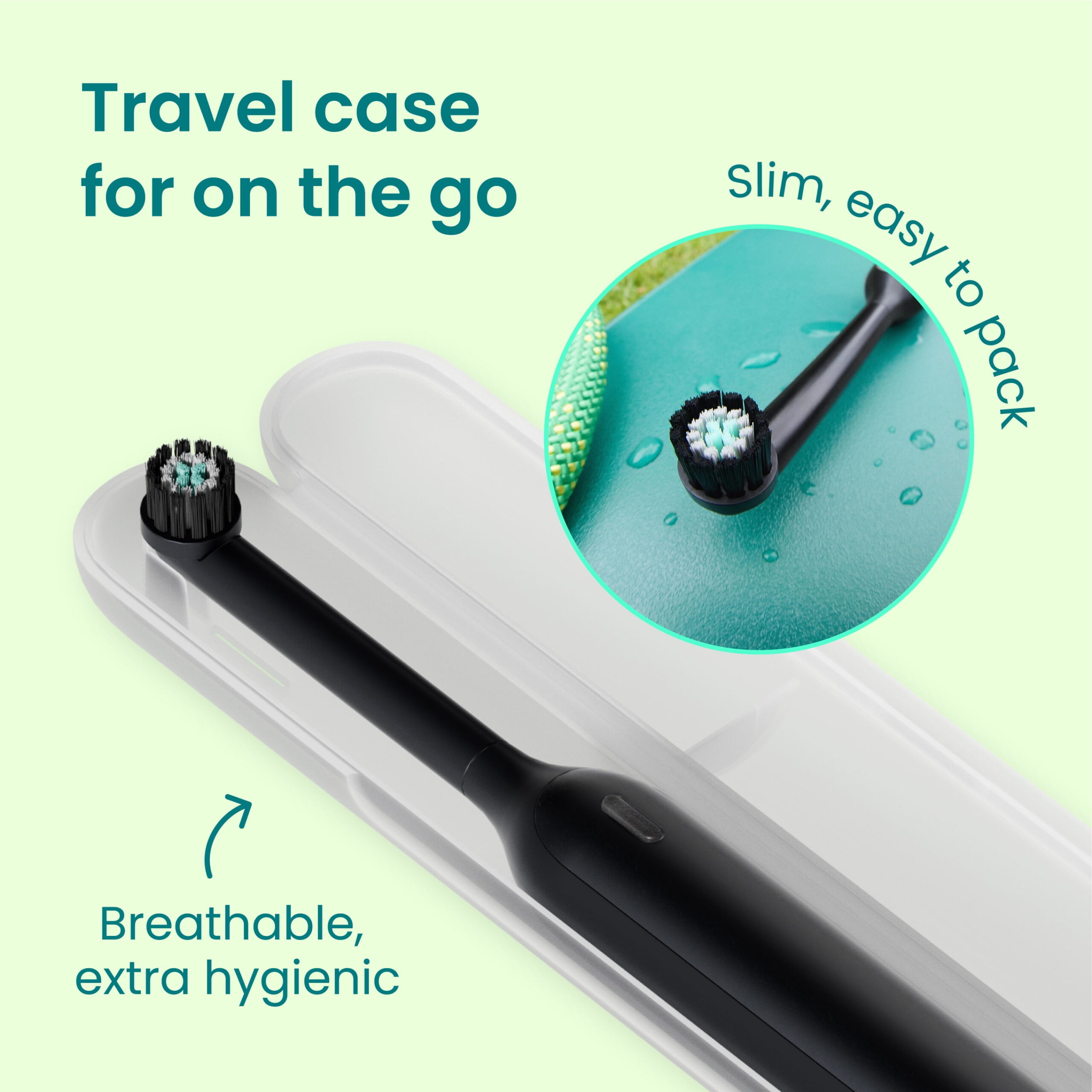 - Travel-Case & Stand: Slim, breathable travel case, countertop stand included
