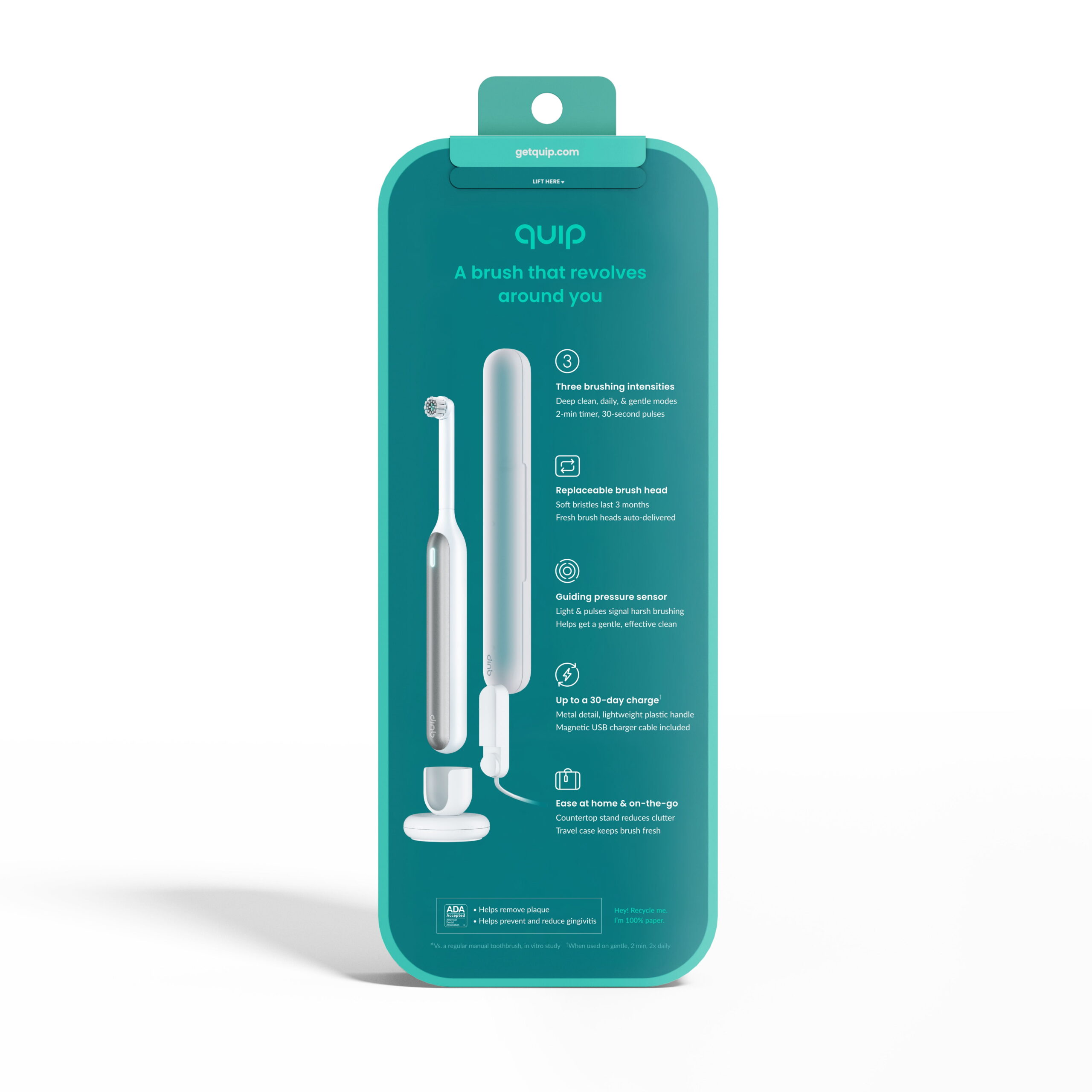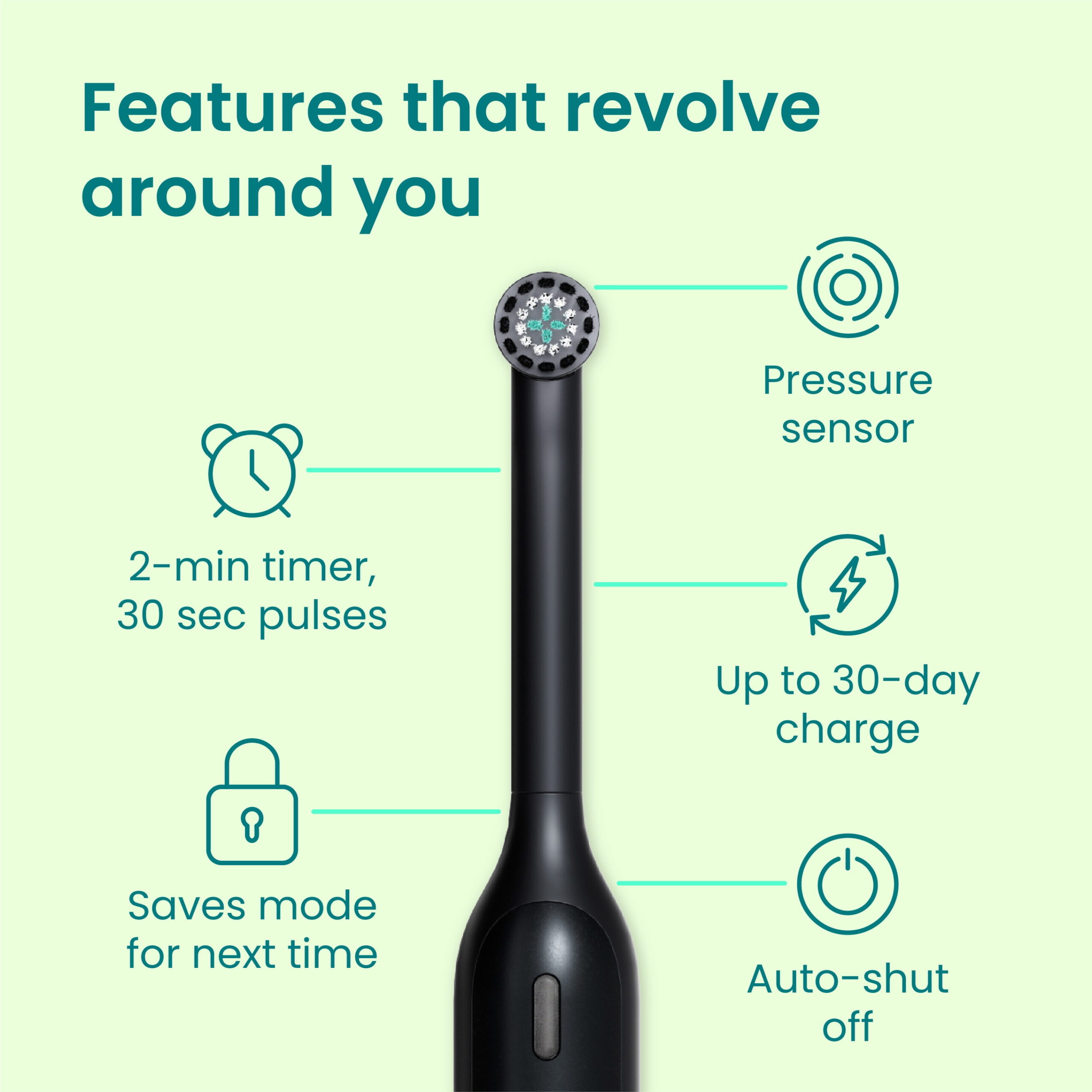 - Guiding Pressure Sensor: LED light, pulses help prevent harsh brushing