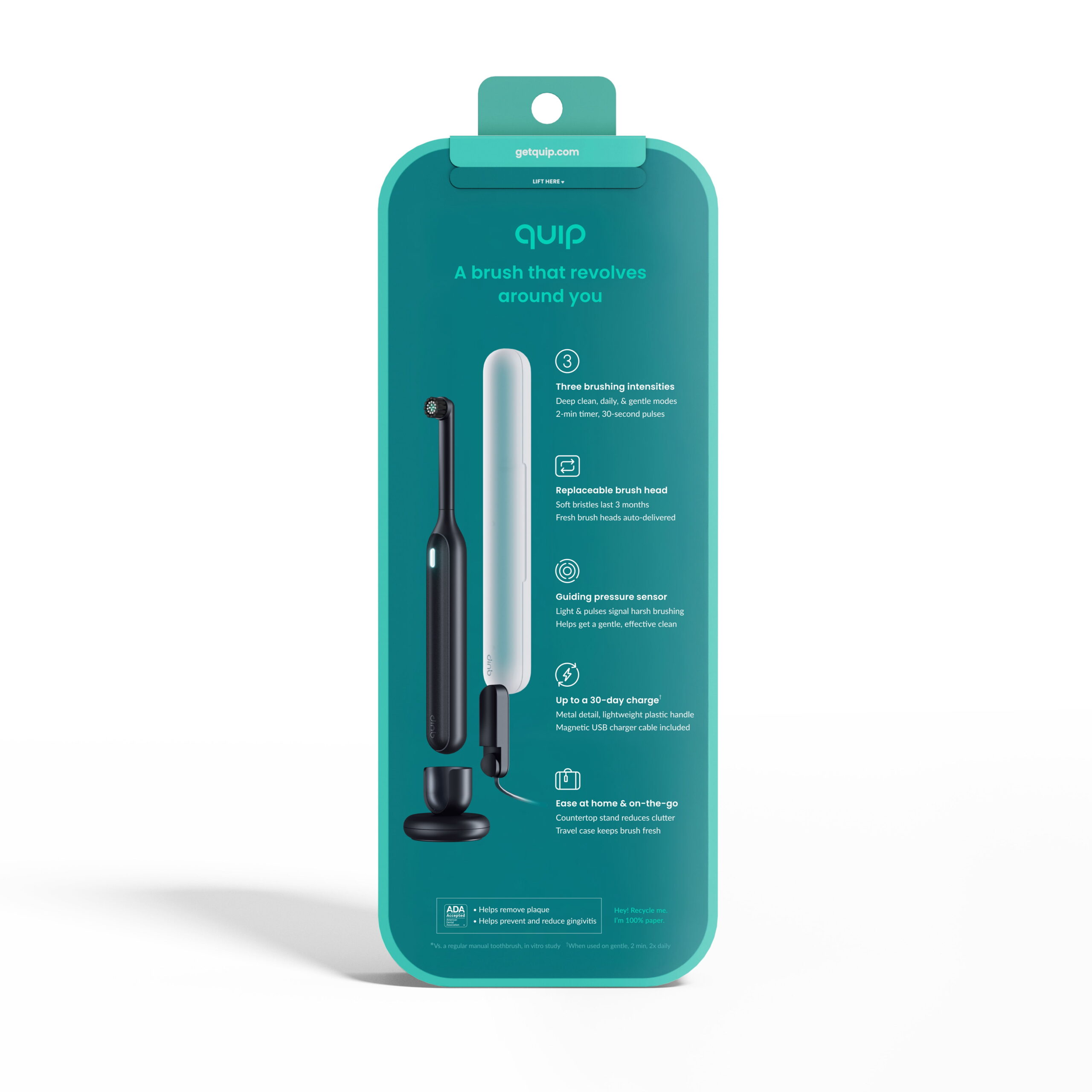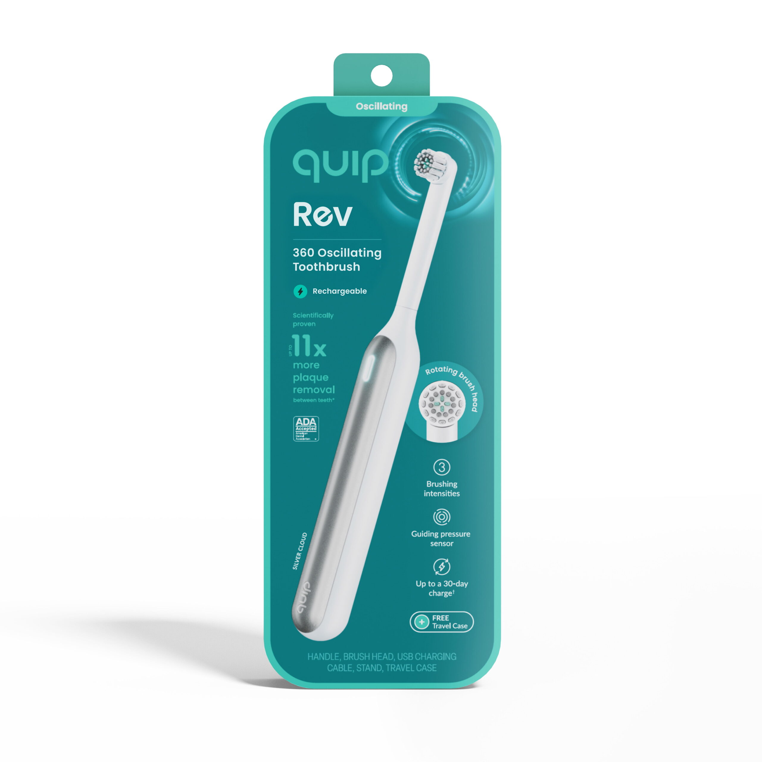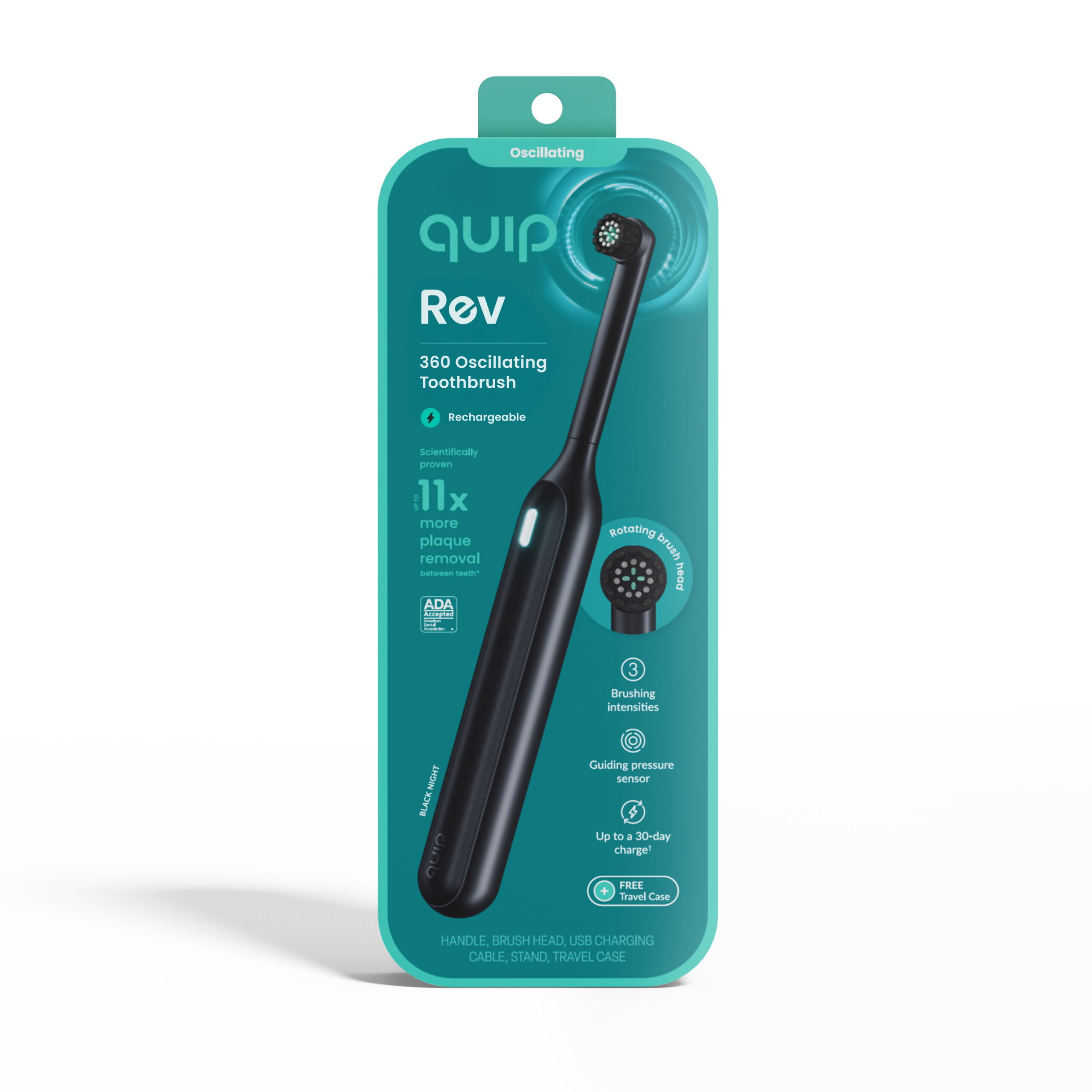 Quip Rev Oscillating Rechargeable Electric Toothbrush, Adult Compact Head, Black Night