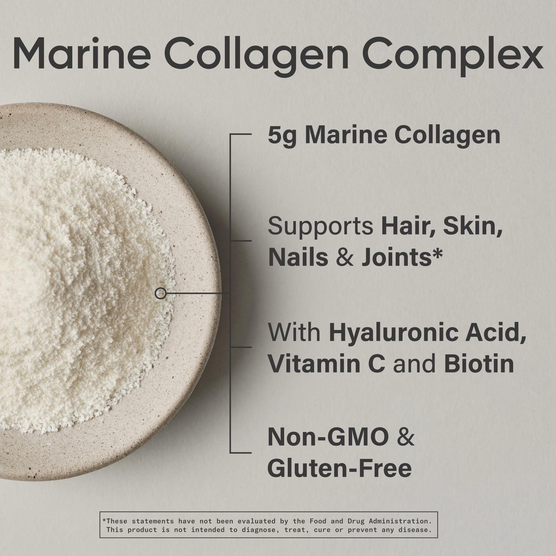 Sports Research Marine Collagen Complex is an unflavored, Non-GMO powder featuring hydrolyzed marine collagen peptides, Hyaluronic Acid, and Biotin to support your wellness. Sourced from wild-caught Barramundi and Red Snapper, this pescatarian-friendly formula provides Type 1 and 3 collagen to help support healthy hair, skin, nails, bones, and joints, contributing to a radiant and youthful appearance. Each scoop delivers 10 grams of collagen and 9 grams of protein, designed to dissolve easily in your favorite hot or cold beverages, making it a convenient addition to your daily routine. This product is also Paleo and Keto certified, offering 30 servings per container.