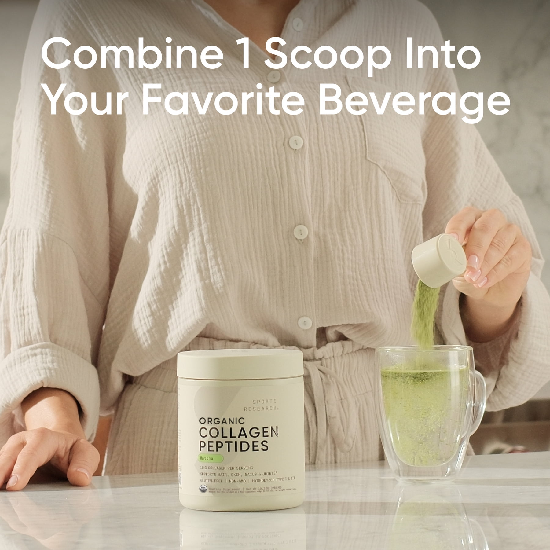 A POWER COMBO: Meet your new morning ritual! Sports Research® Collagen Peptides with Matcha combines our best-selling Collagen with ceremonial-grade Organic Japanese Matcha Green Tea Leaf in an easy-to-mix powder with no sugar or artificial flavors and only 40 calories per scoop.