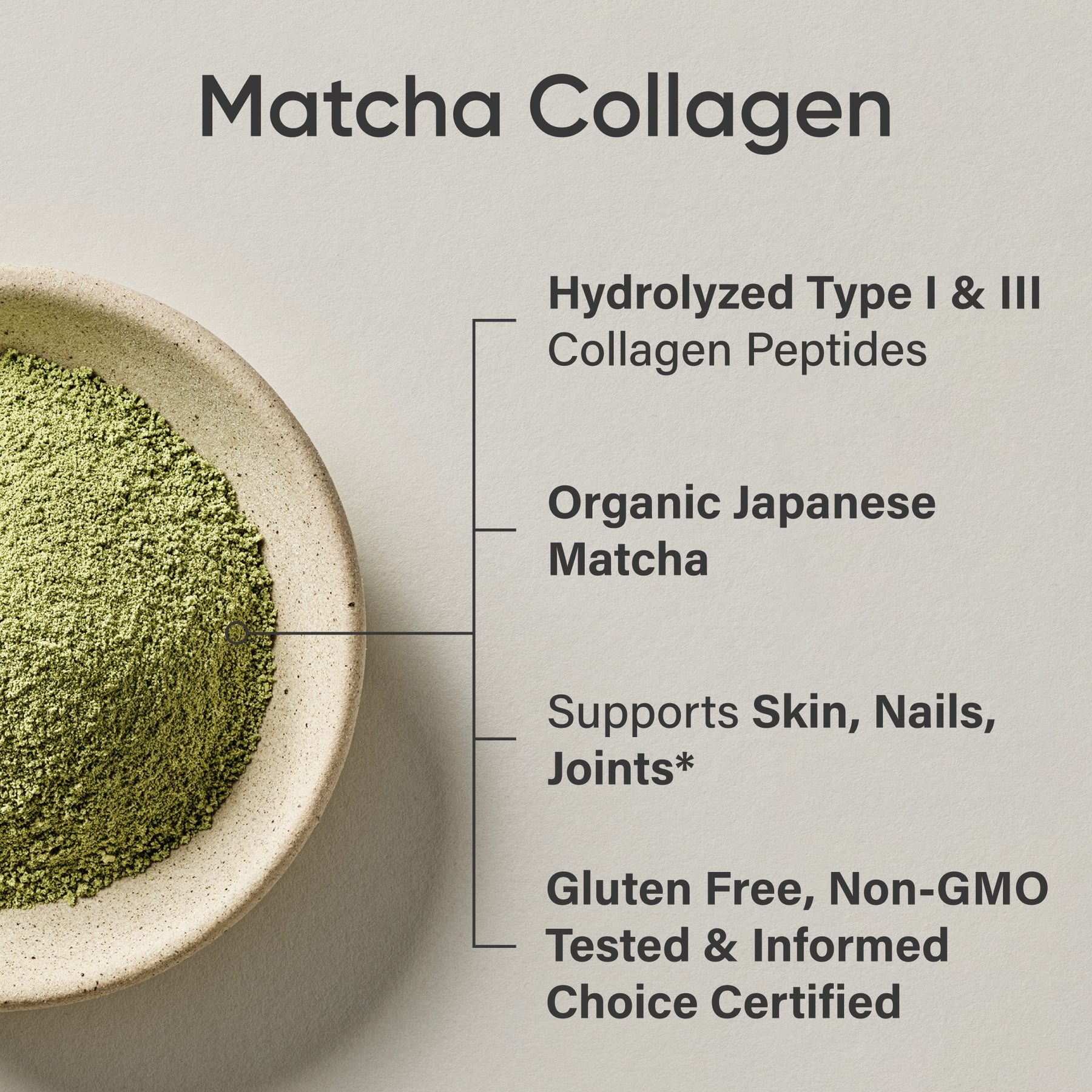 TWO PREMIUM INGREDIENTS: Just one scoop contains 10 grams of Type I and III Collagen Peptides with 18 amino acids along with 2 grams of premium grade Organic Japanese Matcha with 60 mg of naturally occurring caffeine and 20 mg of L-Theanine.