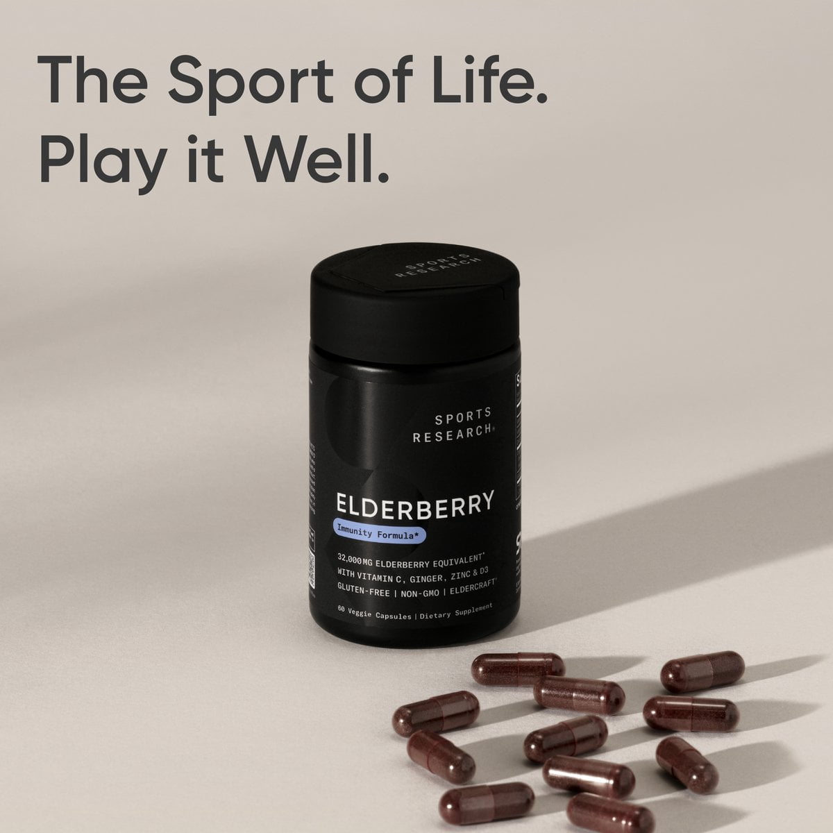 5-in-1 Formula | Sports Research (SR) Elderberry capsules contains 5 high-quality, immune supporting ingredients – Organic Black Elderberry, Vitamin C & D3, Zinc Oxide (an essential nutrient) and Ginger.