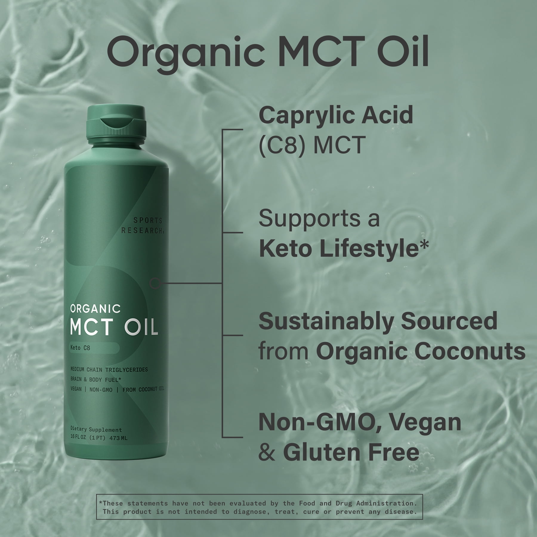 BRAIN & BODY FUEL: Sports Research MCT Oil contains only c8 caprylic acid and is the best all-around MCT oil to help get into ketosis (when your body uses fat as its main fuel source). It only takes three steps for your body to convert C8 MCT oil into ketone energy for your brain and body*