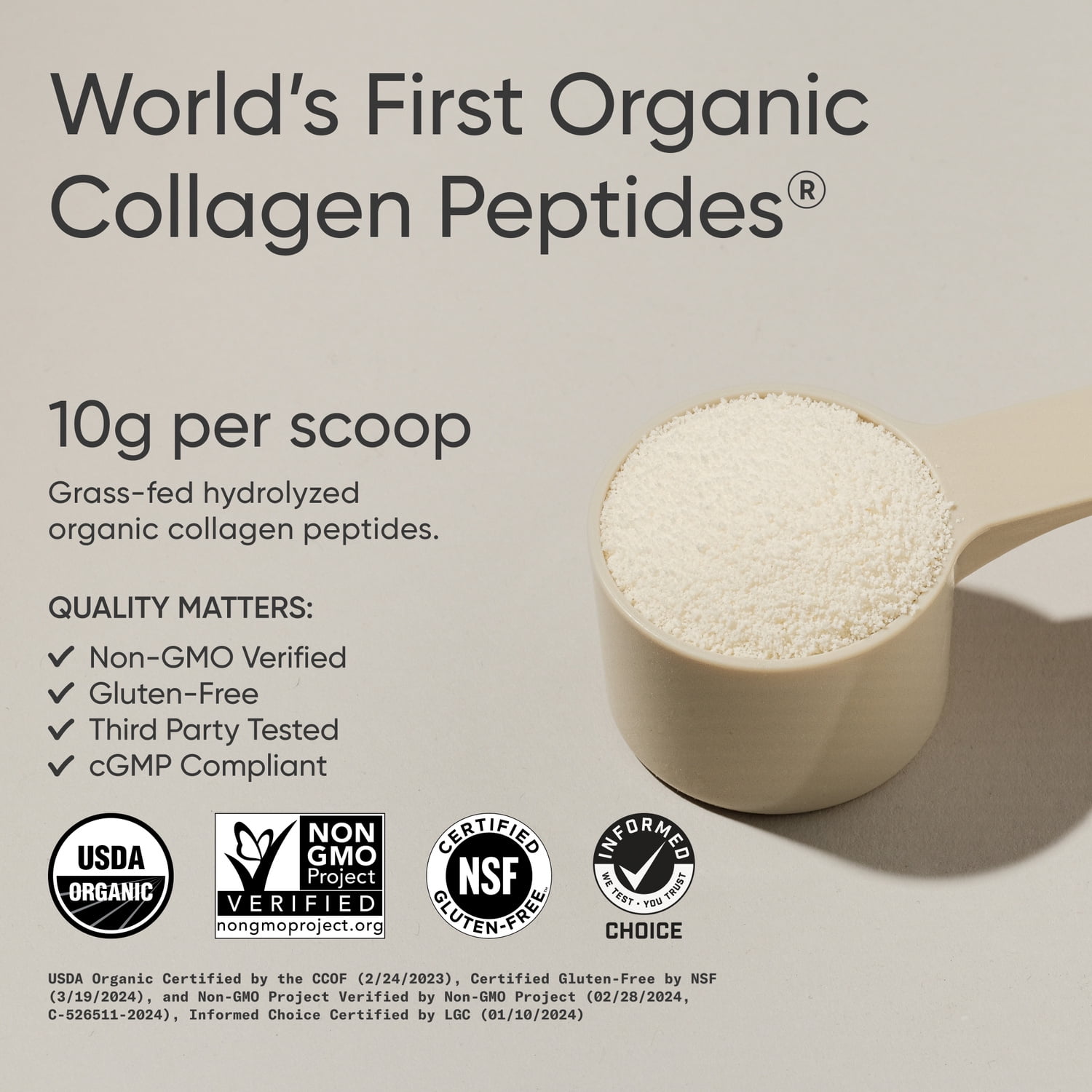 CERTIFICATIONS YOU CAN TRUST: Our collagen protein powder is USDA Certified Organic, Keto Certified, Certified Paleo Friendly, Non-GMO, and 3rd party tested. It’s free from artificial ingredients, fillers, dairy, soy, and gluten—only premier collagen with uncompromised quality.*