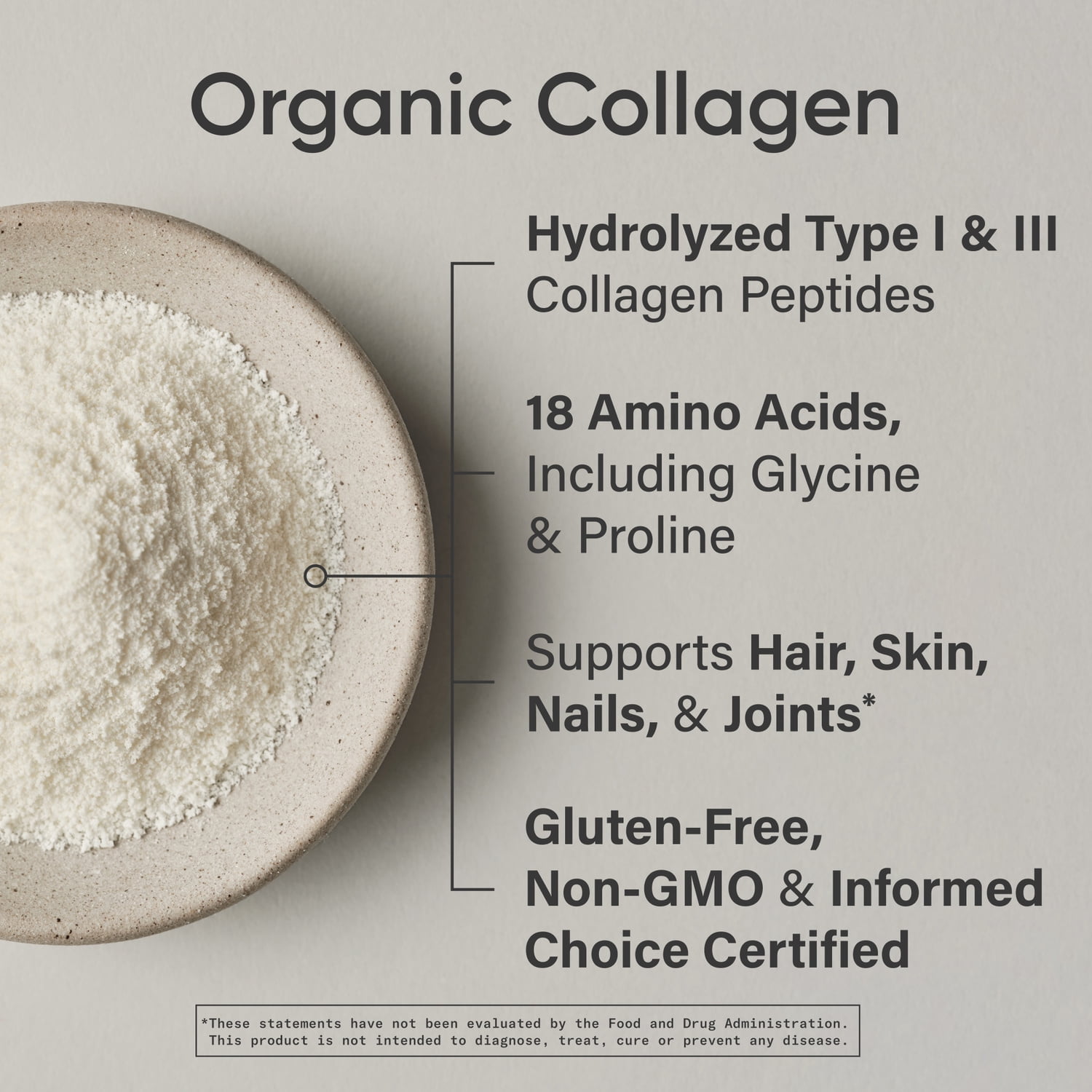 WHAT’S INSIDE: Our formula features 10g of low molecular weight Type I & III collagen peptides sourced from grass-fed, pasture-raised bovine—all 100% USDA Certified Organic. With no hormones, antibiotics, or GMOs, this formula includes 18 amino acids and delivers 9g of protein in just 40 calories per serving. Finally, organic collagen that’s as pure as your standards.*