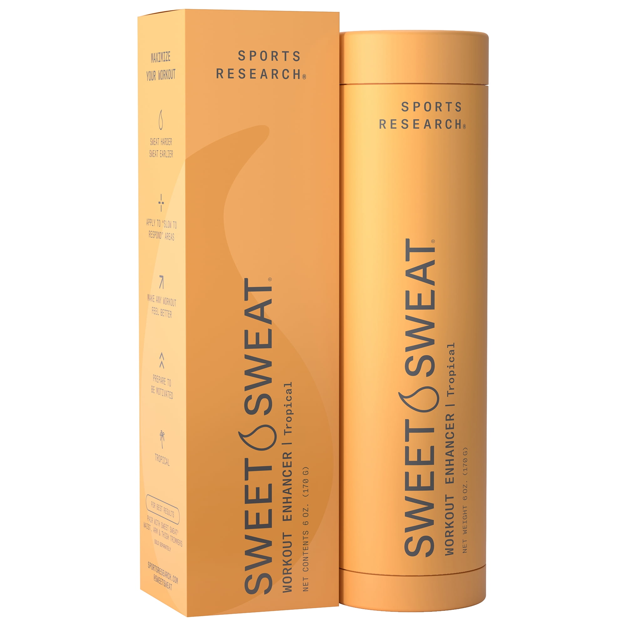 WHAT DO YOU SWEAT FOR? Sweet Sweat is a topical workout gel activated by your elevated heart rate and designed to enhance your body’s natural sweating process, warm-up muscles faster, and make workouts feel better. Because you’re not just moving, you’re building your legacy. Recently validated in a UFC physiology study, Sweet Sweat® helps amplify your workouts and makes you feel more connected to your body. But sweat isn’t the goal— it’s the signal. It’s the moment your body activates. It’s the visible proof that you’ve committed to the journey. You’ve probably seen it: a color-coded tube in gym bags and TikTok workouts. But it’s not new. It’s the OG— with 45 years of hype, proof, and a massive fan base ranging from pro athletes to everyday consumers who swear by it. It’s the product that launched Sports Research and has become a staple in millions of gym bags worldwide. But we’re just getting started. Because we’re obsessive (in a good way). Because we know the details matter. Because we don’t skip steps— we skip rope. We sweat the small stuff, so you can go further. For decades, we’ve powered transformation for millions of people through movement, recovery, and science. Now, it’s your turn. Sweat smarter. Recover stronger. Make every drop count.