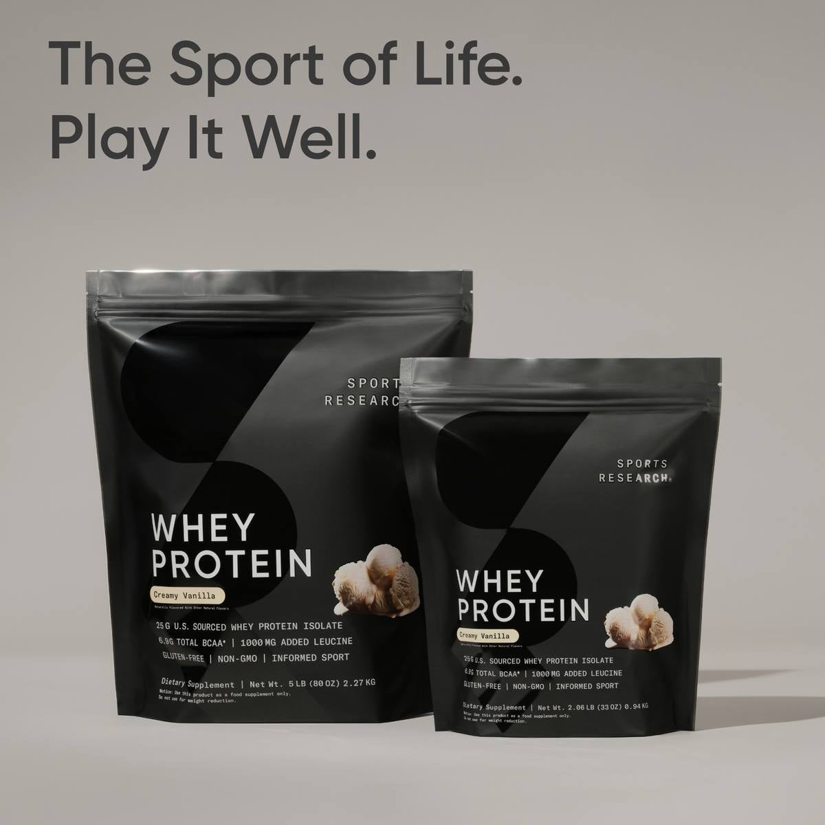 LEAN MUSCLE POTENTIAL: Each scoop of Sports Research U.S. sourced Whey Protein Powder contains 25g of protein and 6.9g of BCAAs for a standout way to build and maintain lean muscle and support—free of xantham gum and artificial sweeteners.*
